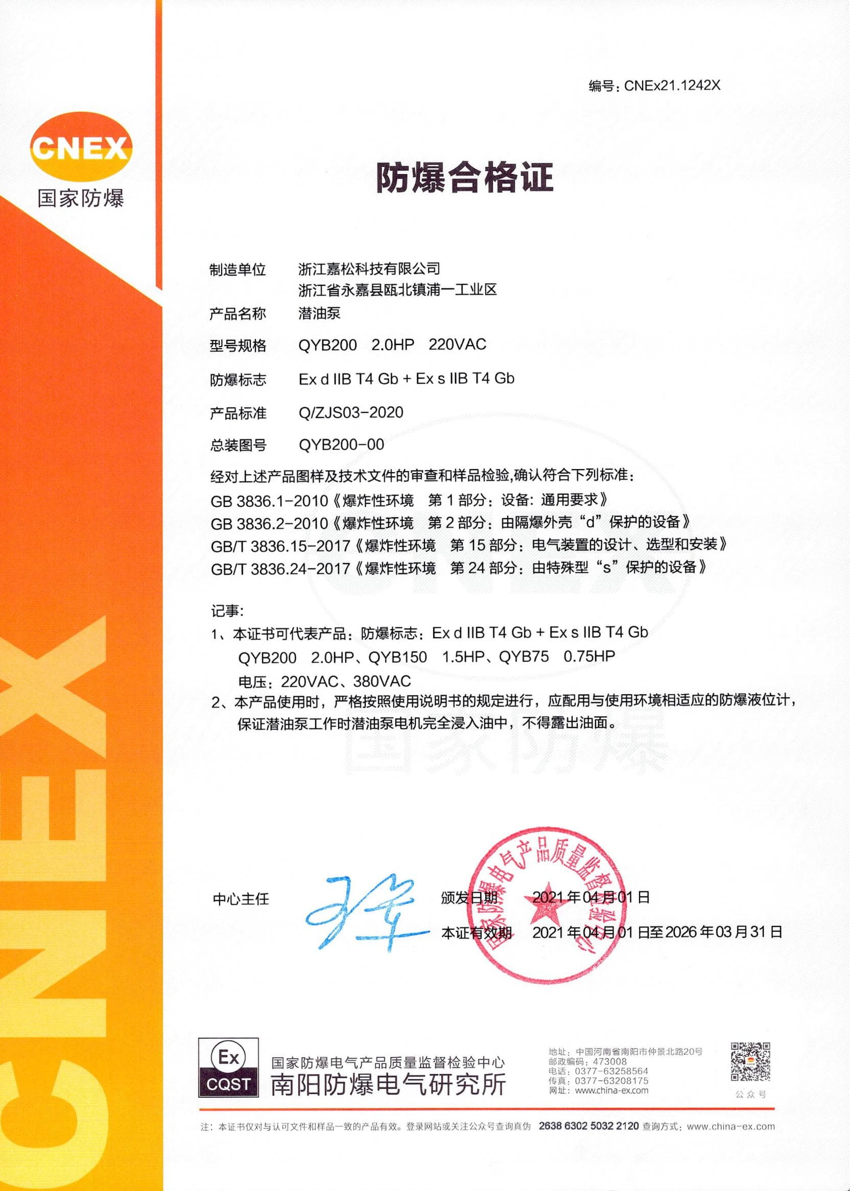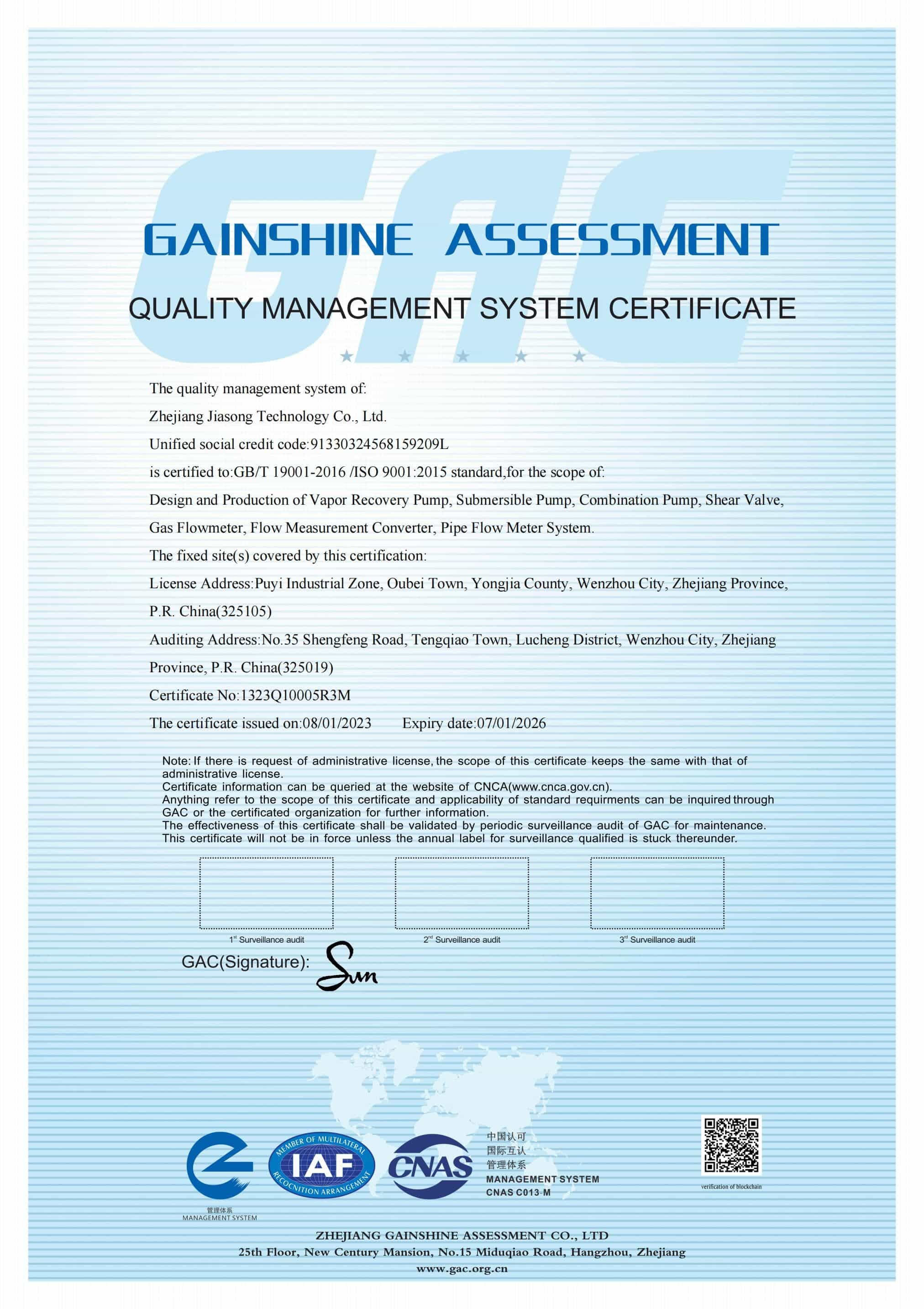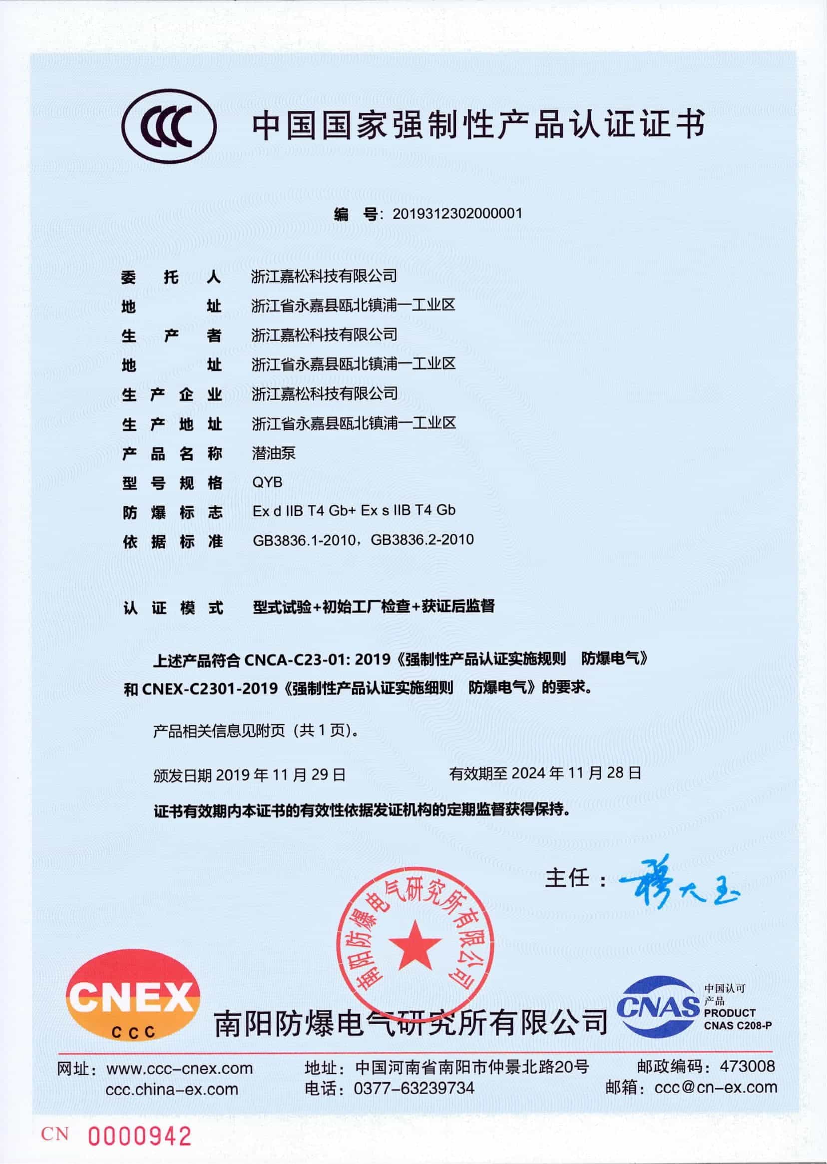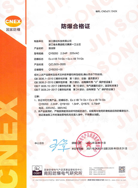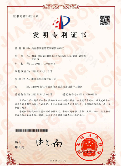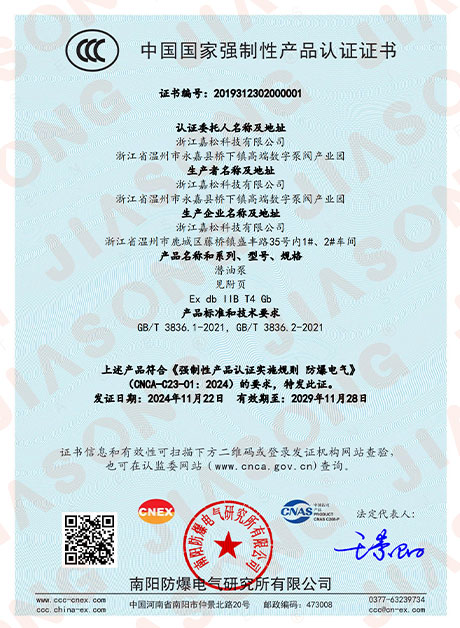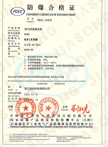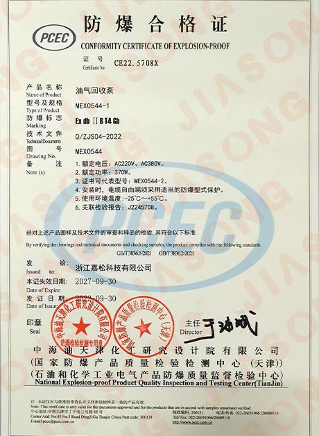浙江嘉松科(kē)技(jì )有(yǒu)限公(gōng)司主要产(chǎn)品包含:加油机用(yòng)泵和流量计,潜油泵、工(gōng)业用(yòng)大流量泵和流量计,油气回收系列、LPG加气机部件系列、尿素DEF系列、加油机等其他(tā)部件系列。 公(gōng)司拥有(yǒu)完善的ISO9001管理(lǐ)體(tǐ)系、欧盟ATEX认证、UL、防爆产(chǎn)品3C证书等一系列认证。